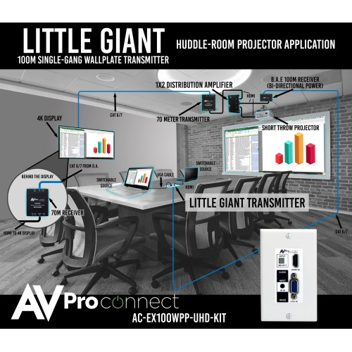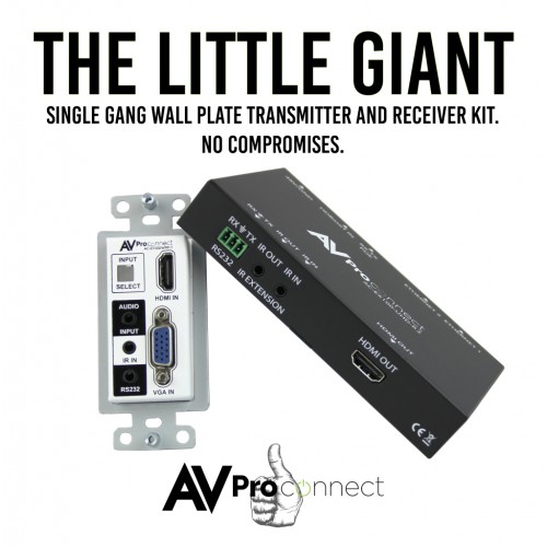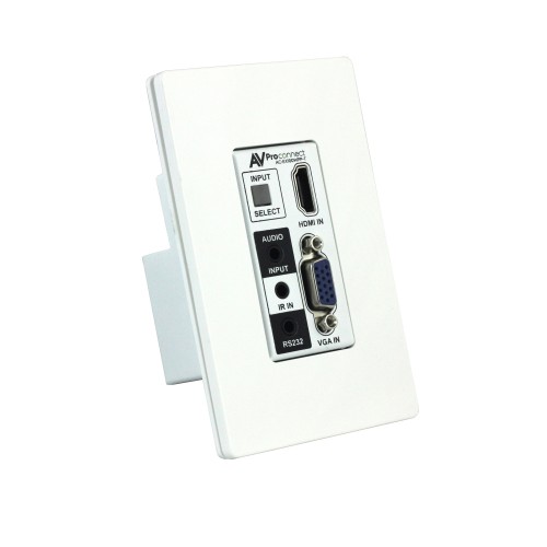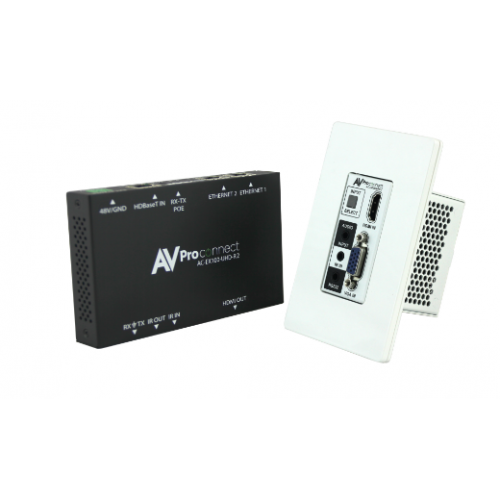 AVProConnect’s auto-switching HDBaseT wall plate transmitter is the world’s ONLY single-gang, dual input VGA & HDMI auto sensing HDBaseT (over single CAT5e or better) Transmitter available today.  Simplify installations in schools, offices, meeting rooms and huddle rooms.  Once integrated into your client’s system he now has the perfect solution for sharing information from any computer or source.  This unit is designed to work flawlessly with all PC, VESA and traditional resolutions 4K 60Hz 4:2:0 8-bit & HDR 4:2:2 12 BIT. VGA supports DCI 2K, 1080P, 1920x1200x60. In addition to its compact and robust design, it transmits the digital signal up to 100 meters (328’) giving you ultimate flexibility, especially in large rooms like libraries or auditorium style rooms/classrooms.  This KIT is a complete solution, we paired our wall plate transmitter (AC-EX100WPP-UHD-T) with the  HDBaseT Receiver (AC-EX100-UHD-R) to power the wall plate transmitter from afar using PoE, thus eliminating the need for a power supply unit near the wall plate.  AVProConnect’s Military grade performance insures system stability for years to come.