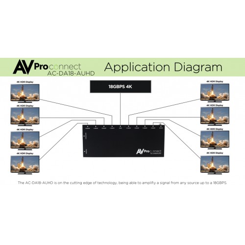 The AC-DA18-AUHD is a part of the first true 18Gbps Distribution Amplifier family.  This products is ideal on all applications where stable distribution is key.  These distribution amplifiers can be cascaded for extended distances and and additional outputs