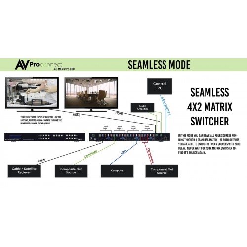 The possibilities are endless. This is the ideal solution for high end home installations as well as being the ultimate presentation switch for classrooms, board rooms and training environments.